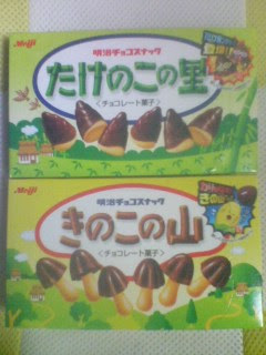 ・昨日の同窓会の帰りに、「たけのこの里」と「きのこの山」を同時に買いました(笑)。写真はややボヤけ気味ですね……。ちなみに、僕はたけのこ派です。